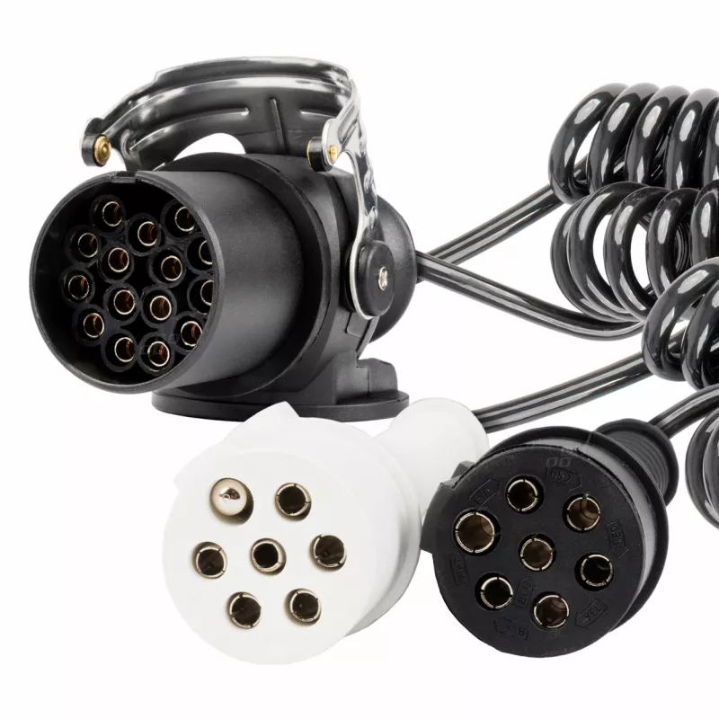 Ensemble de câbles spiralés 24V pour semi-remorque, comprenant 1 prise 15 PIN et 2 prises injectées 7 PIN (type N/S)