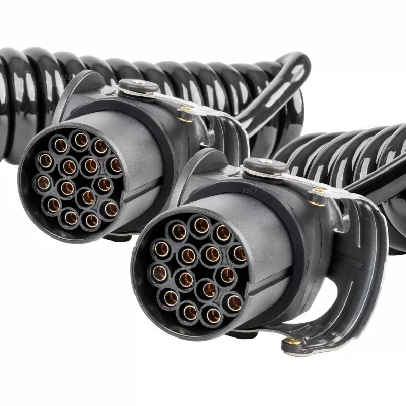 Câble spiralé professionnel 24V pour semi-remorque avec 2 connecteurs 15 PIN, conforme à la norme DIN ISO 12098