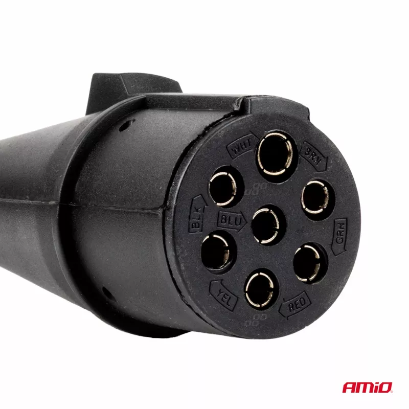 Prises 7 PIN injectées garantissant durabilité, étanchéité et résistance à la pluie, poussière, températures extrêmes et vibrations