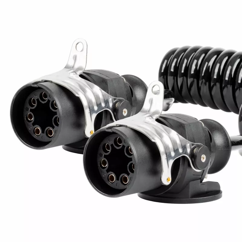 Câble spiralé robuste de 5 m pour remorque, équipé de deux connecteurs 7 PIN type N, conçu pour une installation 24V