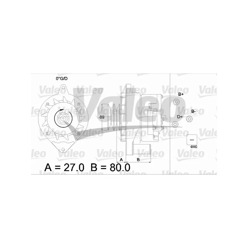 Courant de charge de l'alternateur (A) : 27 A