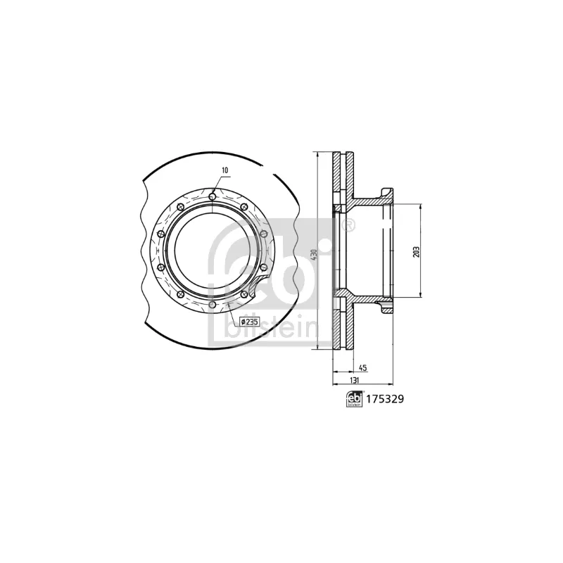 Illustration alésage / nombre de trous : 10/10