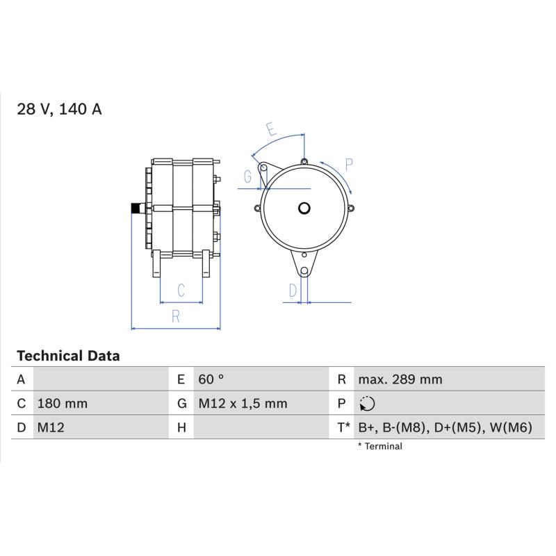 Courant de charge de l'alternateur (A) : 140 A