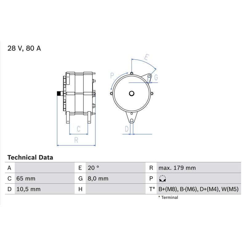 Courant de charge de l'alternateur (A) : 80 A