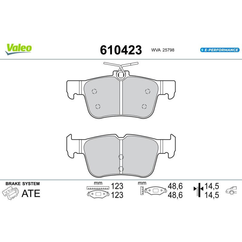 Jeu de 4 plaquettes de frein arrière VALEO - 610423