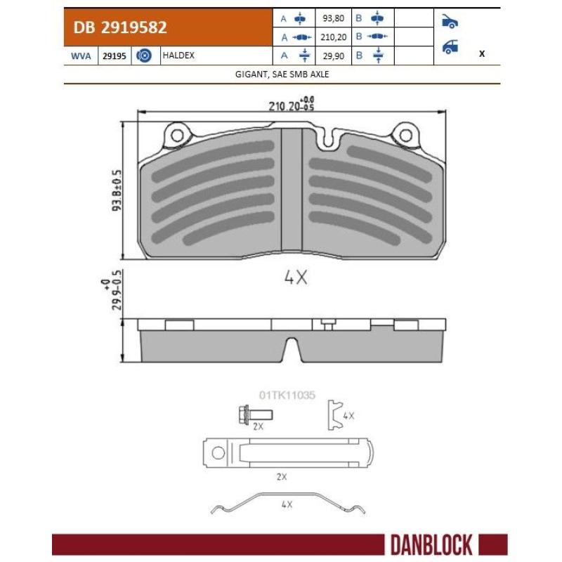 Jeu de 4 plaquettes de frein DANBLOCK - DB 2919582