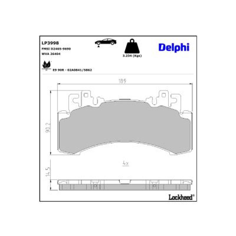 Jeu de 4 plaquettes de frein avant DELPHI - LP3998
