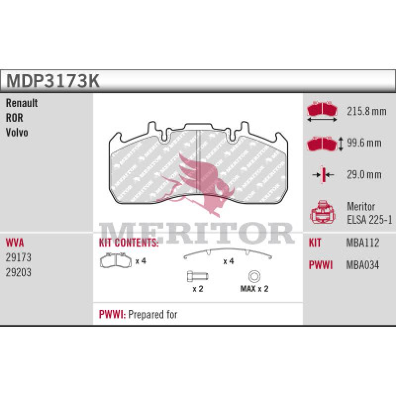 Jeu de 4 plaquettes de frein avant MERITOR - MDP3173K
